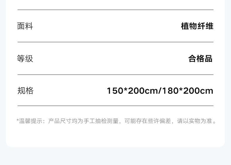 货 号 :HLX-XZ2513 面 料 :植物纤维 规 格 :150*200 重 量 :1000g 包装尺寸 :51*41*9cm 装 箱明细 :8套 /箱或50条/包 1.精选面料 : 采用斜纹提花面料,凉感舒适,触感柔软,还原清凉睡感; 2.精湛印染 : 活性印染工艺,不退色不缩水,图案鲜活靓丽,亲肤透气; 3.精致工艺 : 提花工艺 尽显高 级,包边工艺尽显大气;
