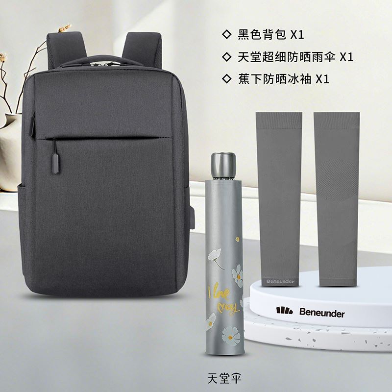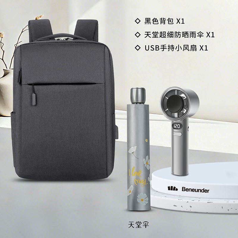 一辈子:商务通勤包(天堂超细防晒伞+USB手持小风扇)