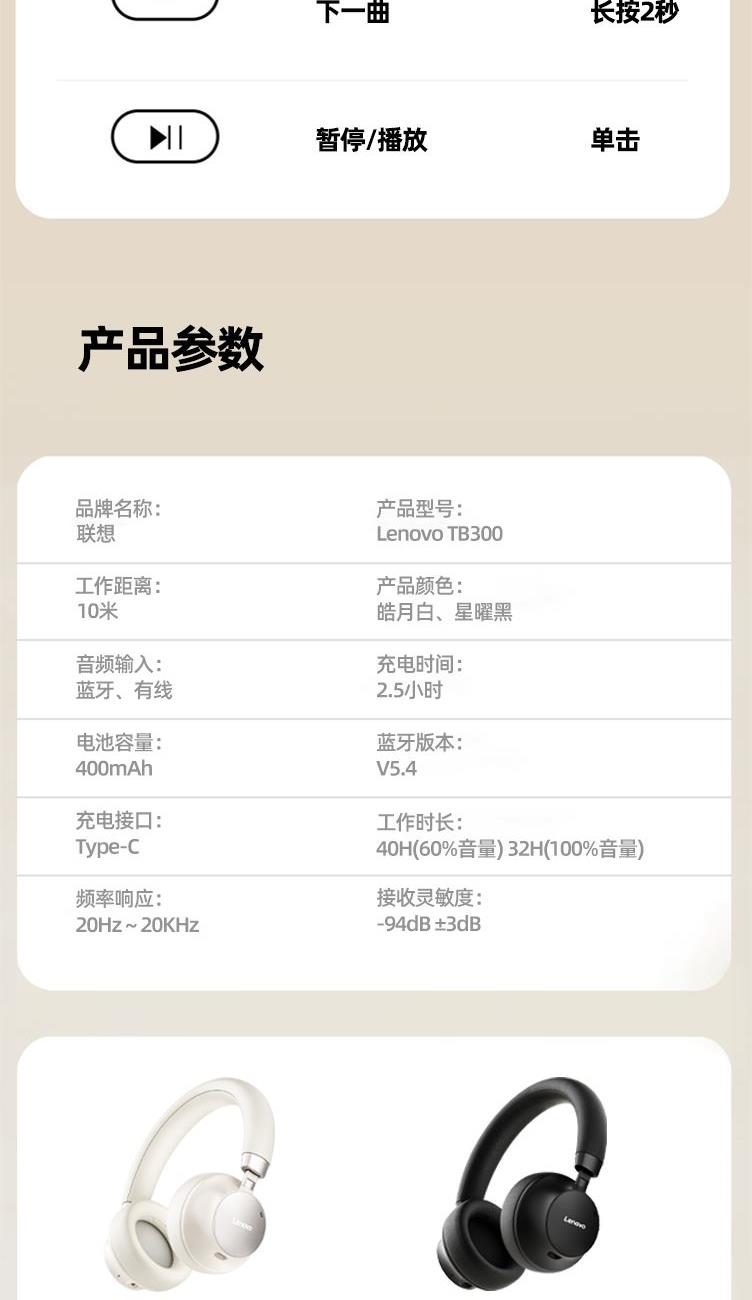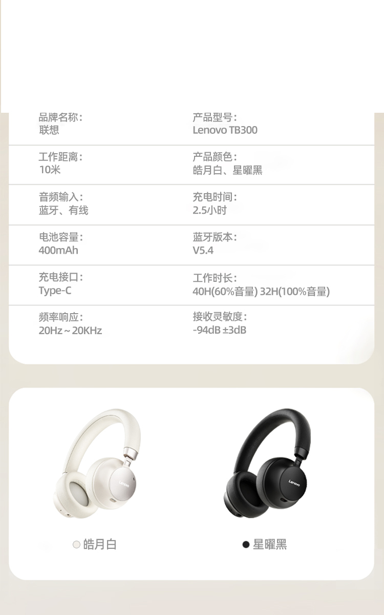 联想Lenovo头戴式耳机TB300