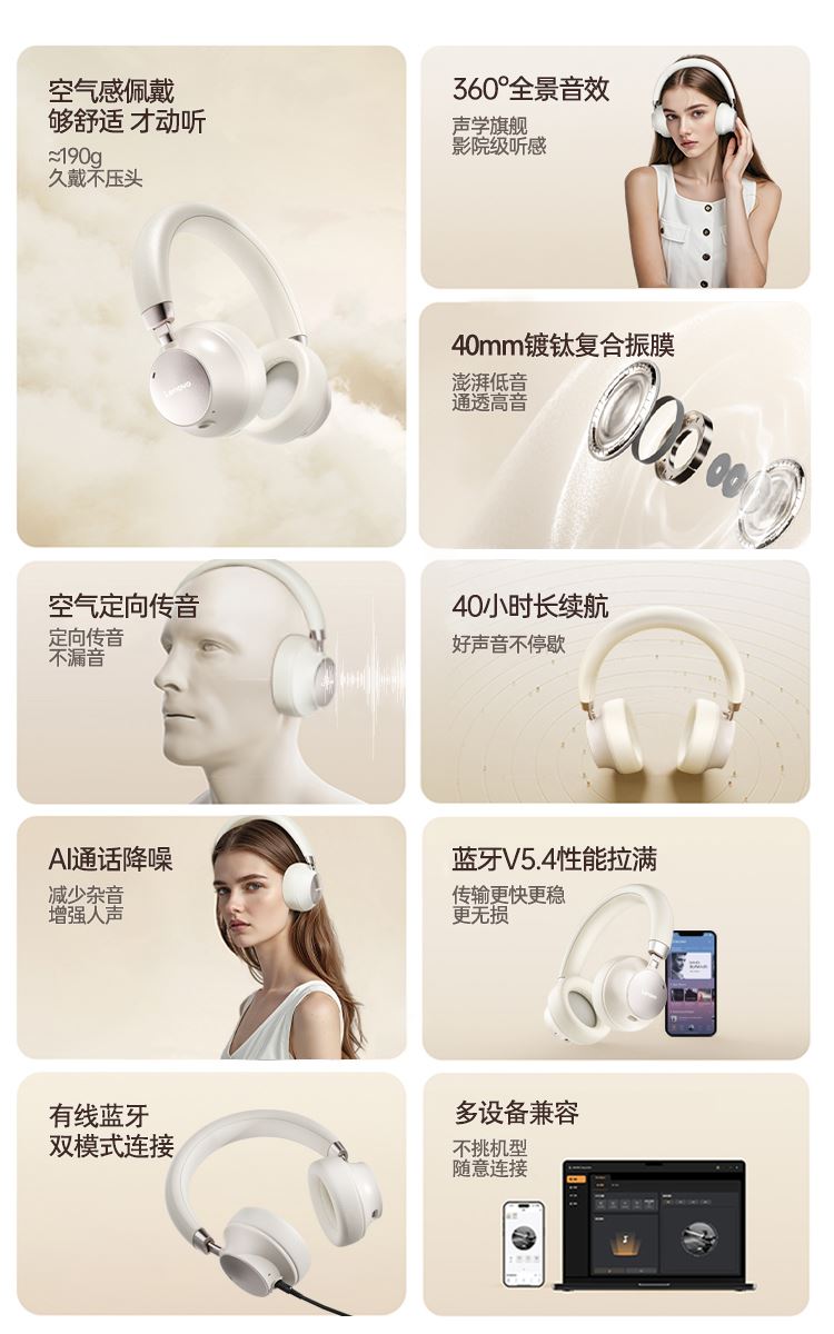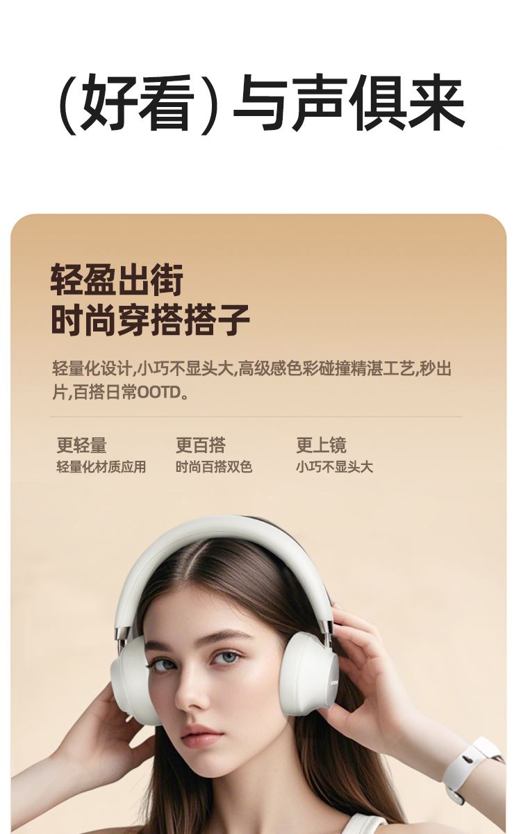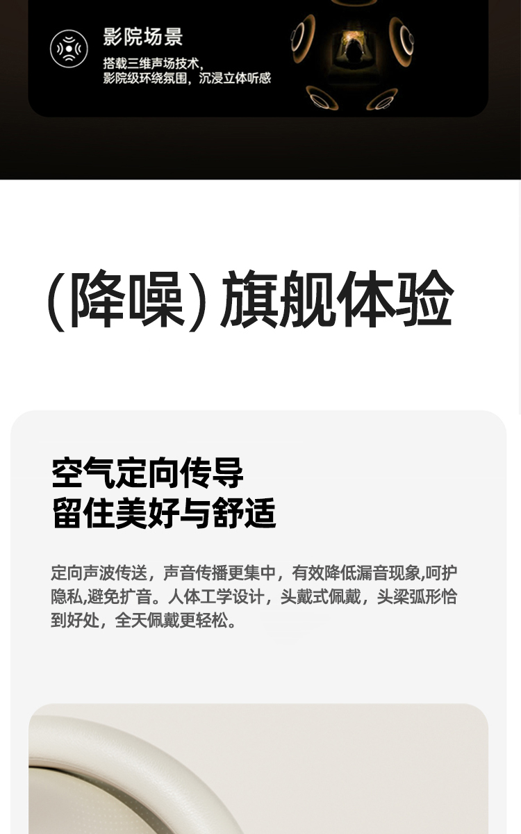 时尚单品,不止听音 空气感佩戴,够舒适,才动听 360°全景音效,声学旗舰,影院级听感