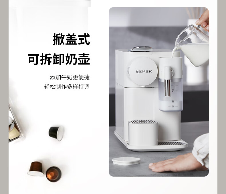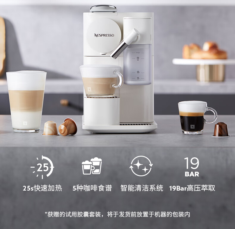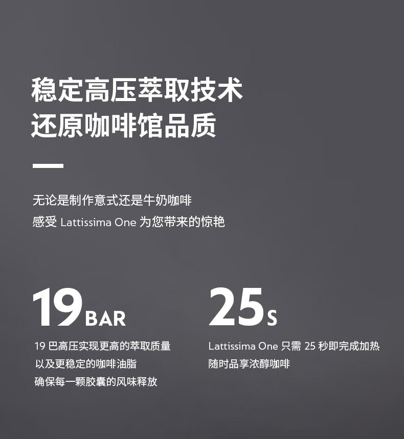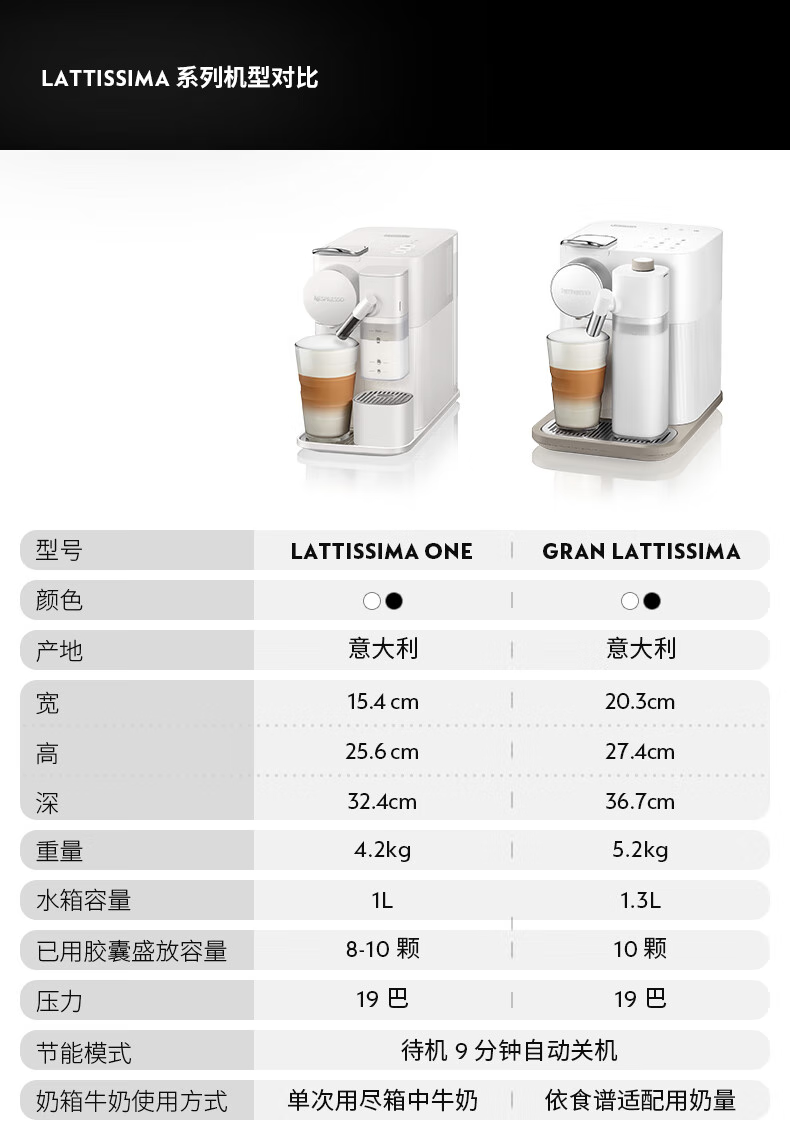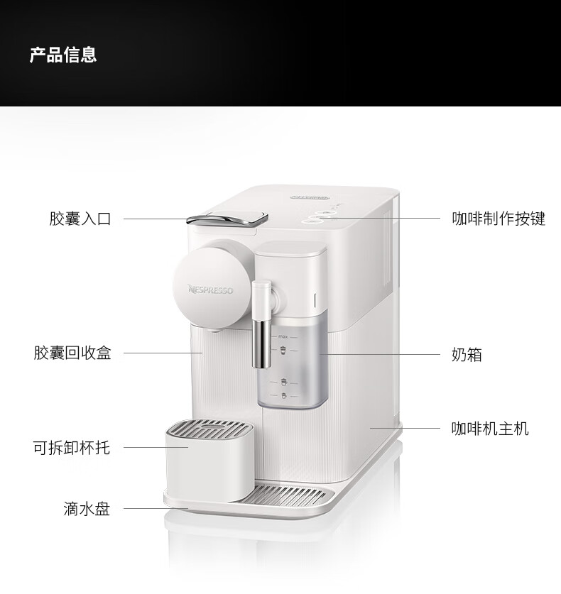 型号:F121 电源线长:1.2m 额定电压:220V 额定功率:1200W 产品尺寸:长154mm 宽324mm 高256mm 水箱容量:0.6-1.29L 泵浦压力:19Bar 制作口味:卡布奇诺 拿铁 意式浓缩 强劲黑咖、香浓奶咖大师品质一键完成,在家便能享受大师级意式咖啡、卡布奇诺、浓缩玛奇朵或拿铁玛奇朵等5种预设食谱,随心享受属于个人的咖啡时光