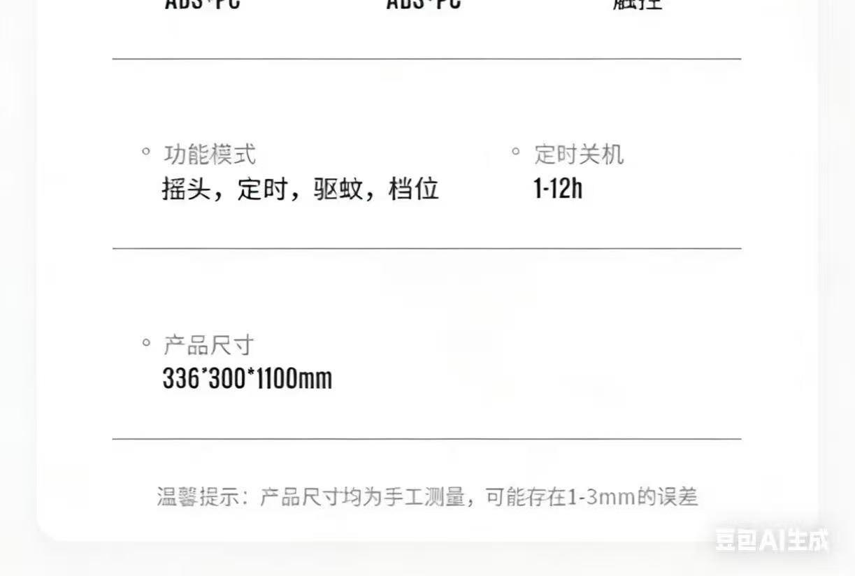 型号:WTH-ZL255 功率:20W 控制方式:智慧语音/触屏/遥控/手机小程序 风速档位:32档 产品尺寸:336*300*1100mm 一级能效 32档风速调节 直流无刷电机 智慧语音/触屏/遥控/小程序 超声波驱蚊 自然、睡眠、婴儿、正常风