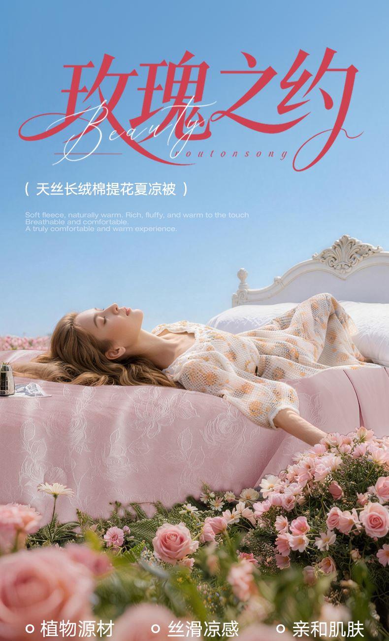 <赫兰希>天丝长绒棉提花夏凉被-玫瑰之约