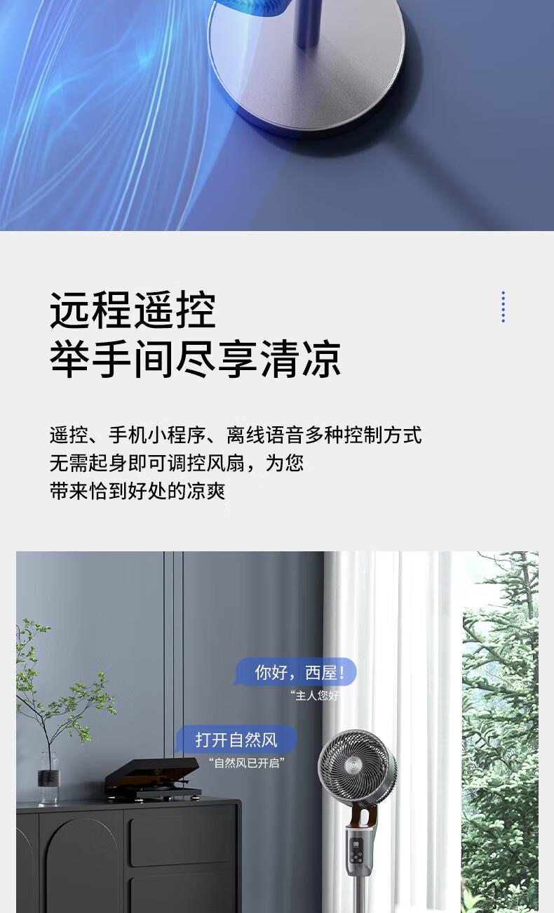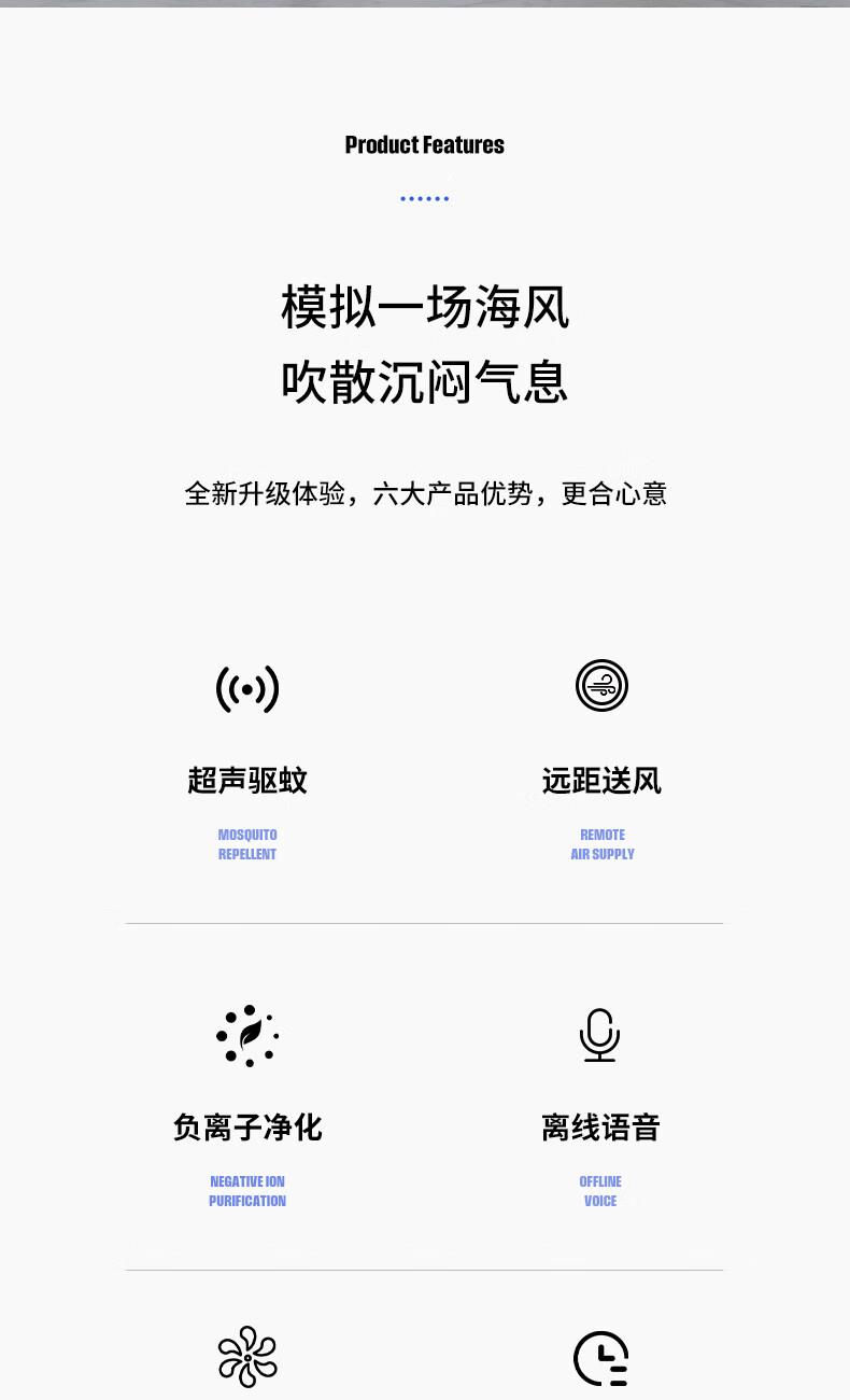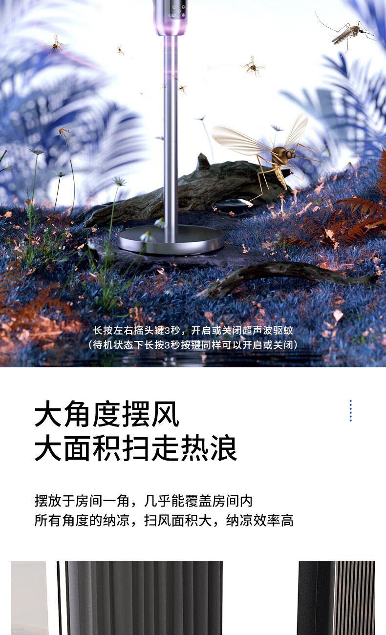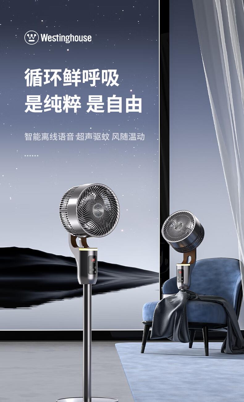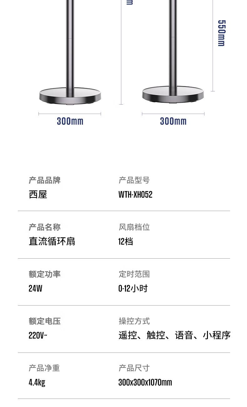 型号:WTH-XH052 功率:35W 控制方式:智慧语音/触屏/遥控/手机小程序 风速档位:12档 产品尺寸:300*300*1070mm 超声波智能驱蚊 12档风速调节 智能语音交互 负离子净化 直流电机