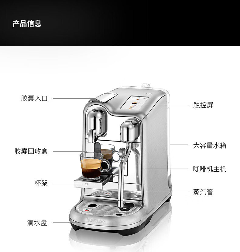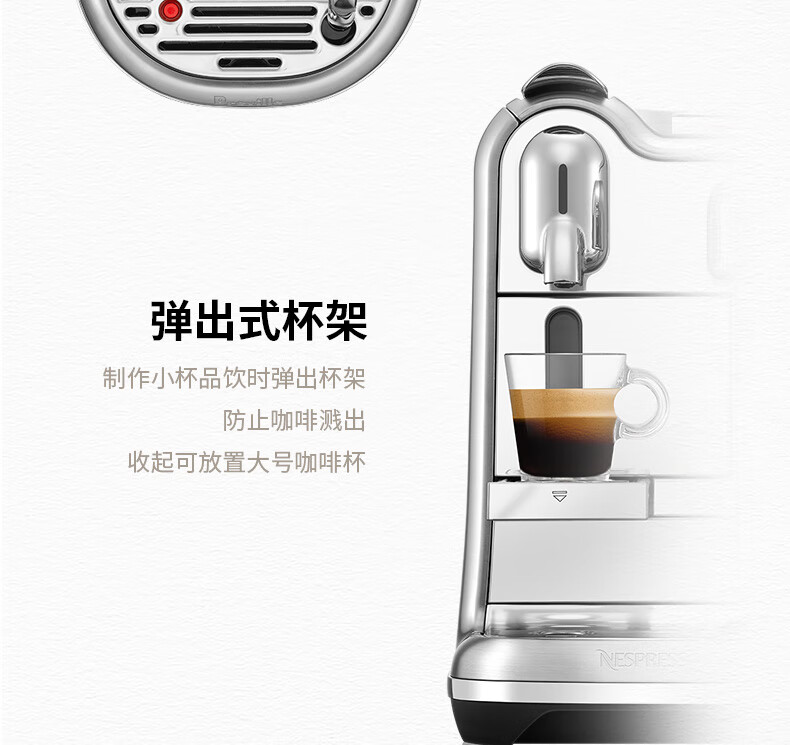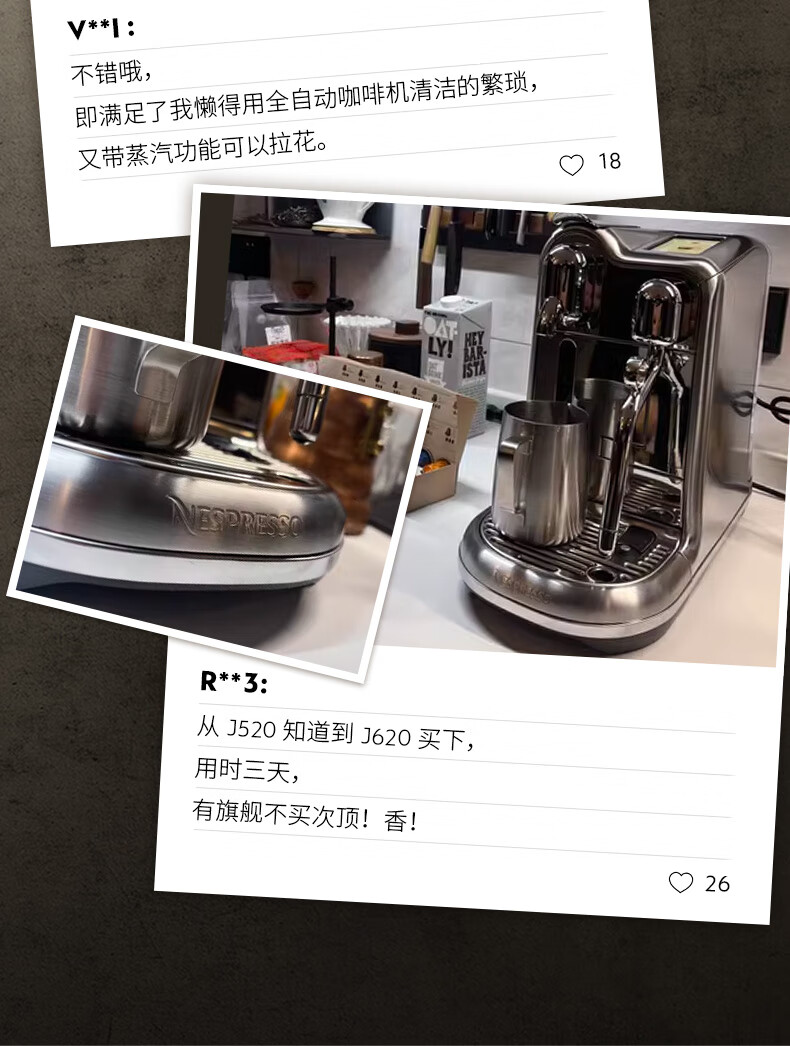 型号:J620 电源线长:1.2m 额定电压:220V 额定功率:2300W 产品尺寸:长429.4mm 宽327.5mm 高196.5mm 水箱容量:1.9L及以上 泵浦压力:19Bar 交互进阶更舒适的操作体验CREATISTAPRO所有精妙的设计皆为给咖啡爱好者提供更进阶更舒适的使用体验,全触控式屏幕,弹出式杯架,高品质奶泡无需等待。