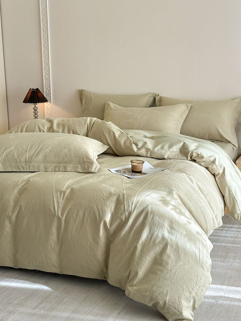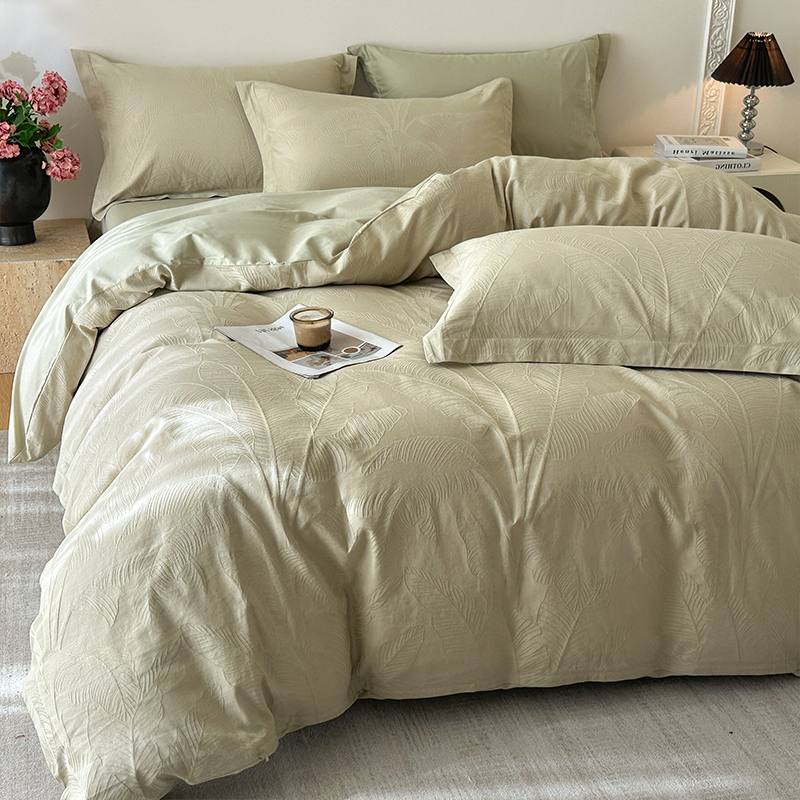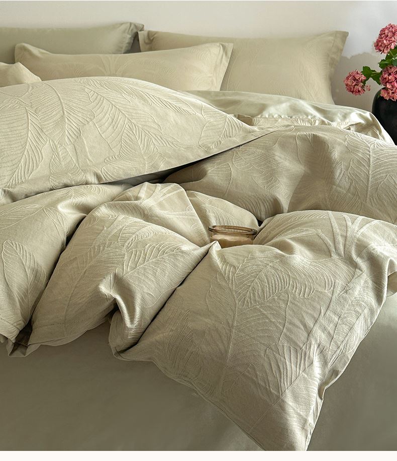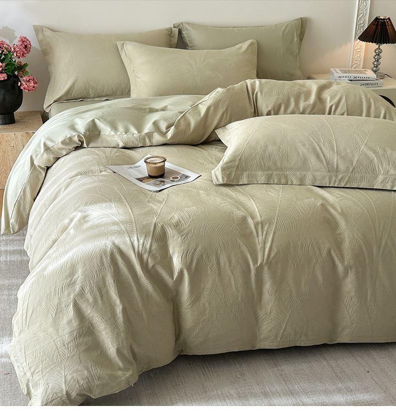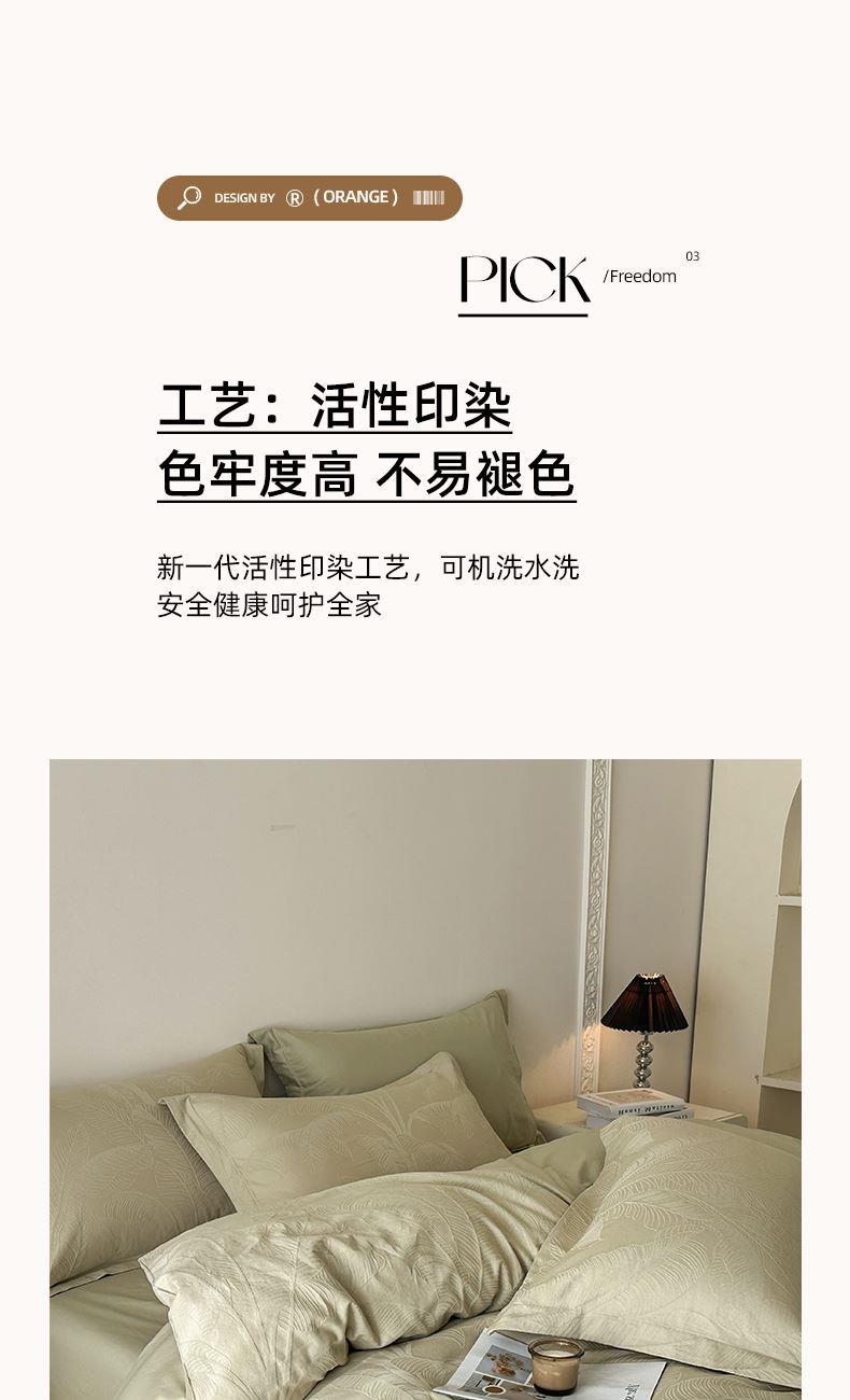 被套:200×230cm 床单:230×245cm 枕套:48×74cm 适用:1.5M-1.8M床 面料:棉 风格:无印风格 包装:精美礼盒 甄选全棉色织面料,触感柔滑细腻感知好睡眠感受每一次接触带来的柔软体验,浪漫浮雕提花工艺契合现代人的审美。AB双版精心搭配的版型设计给床品增添层次愈睡愈爱