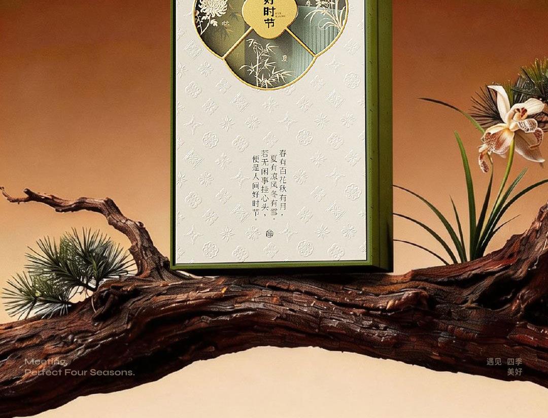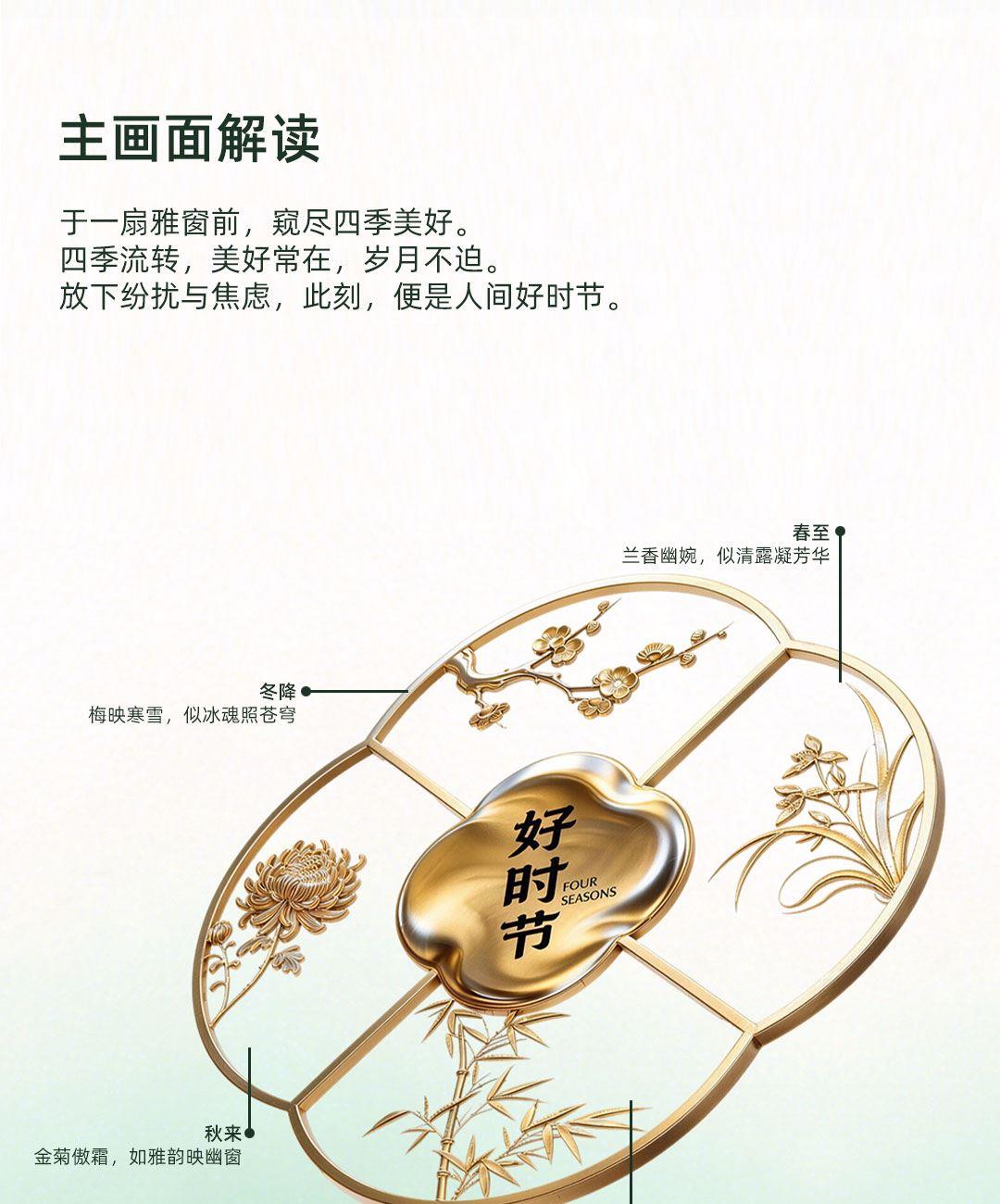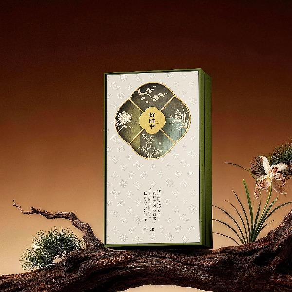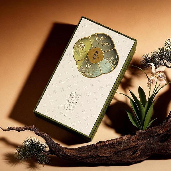 1、精致礼盒包装,尺寸:375*213*110mm 卖点:透明海棠窗,烫金四君子纹样,配套同系手提袋,深墨烫金,尽显雅致质感。