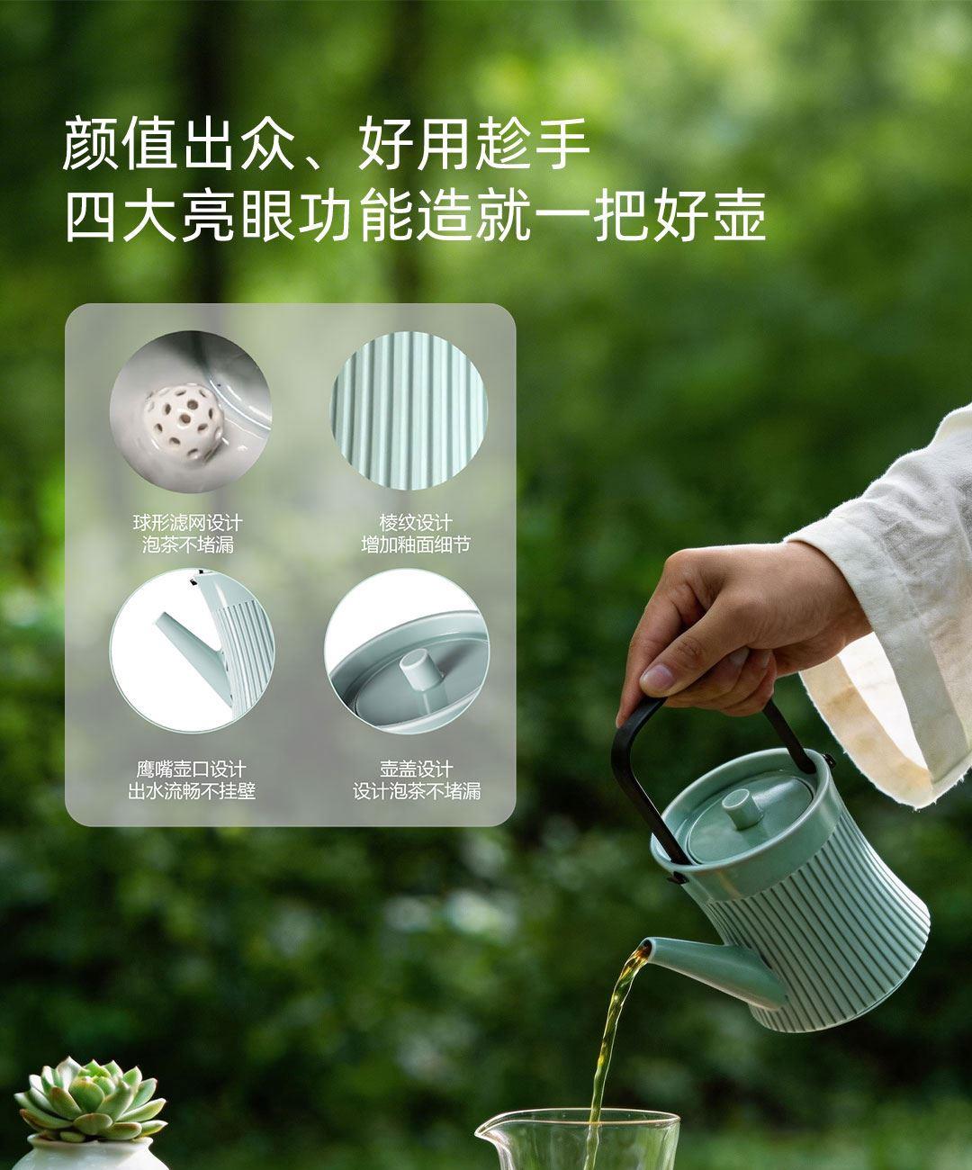 卖点:由工艺大师监制德化白瓷烧制成型,德化白瓷胎质细腻,釉面莹润,触感如脂似玉。提梁弧度贴合掌心,握持省力;壶嘴出水流畅,断水利落,不滴不洒。更能防滑防烫,兼顾手感与安全。瓷质致密,不吸味、易清洗,