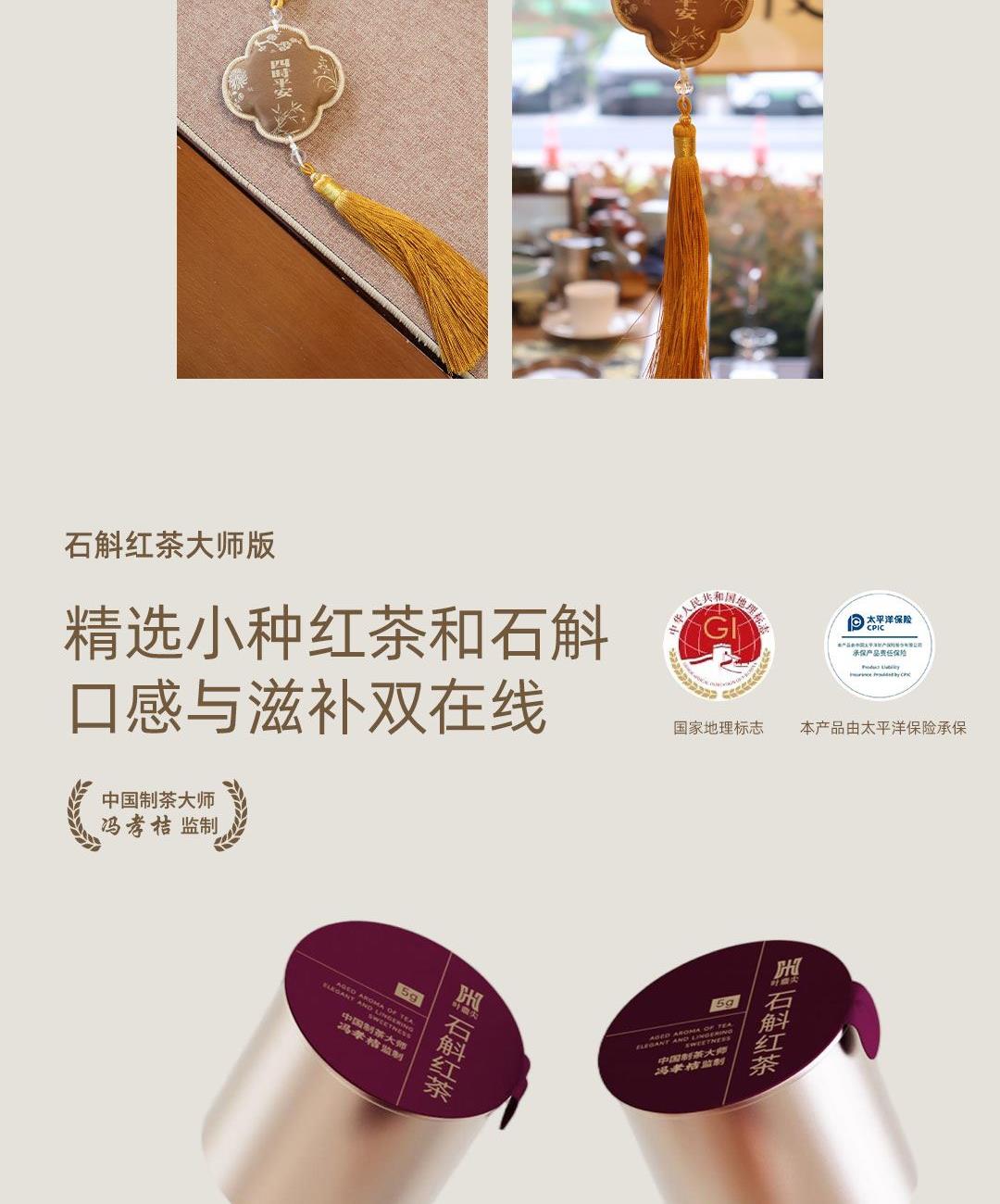 卖点:中国制茶大师冯孝桔监制,太平洋保险承保,品质保证,精选正山小种,芽叶饱满鲜嫩,茶汤清透澄澈,入口甘爽绵柔,没有涩味,余韵悠长;搭配优质石斛,纹理清晰、粉质细腻,不添加任何杂质,保留食材本真风味。