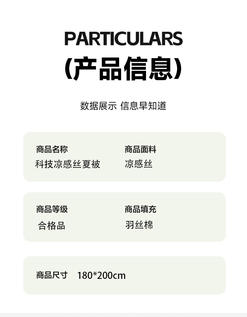规格:180*200cm 面料:凉感丝 填充:羽丝棉 克重:1300g
